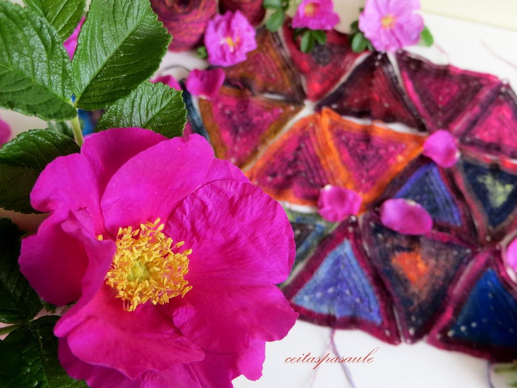 Jūnijs ziedu mēnesis, vasaras mēnesis, vasaras saulgriežu laiks. Ziedošā spilgtā magone mani apžilbina, nevaru vien acis atraut no koši sarkanajiem toņiem. Sen iesāktais krustiņdarbs atguvis otro elpu, šķiet, pabeigšu tūlīt, tūlīt... pēc divu nedēļu čaklas krustiņošanas košais zieds ir uzplaucis!